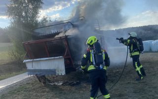 Ein brennender Ladewagen wurde über den Notruf in der Integrierten Leitstelle gemeldet. Dadurch wurden unsere Einsatzkrä ...