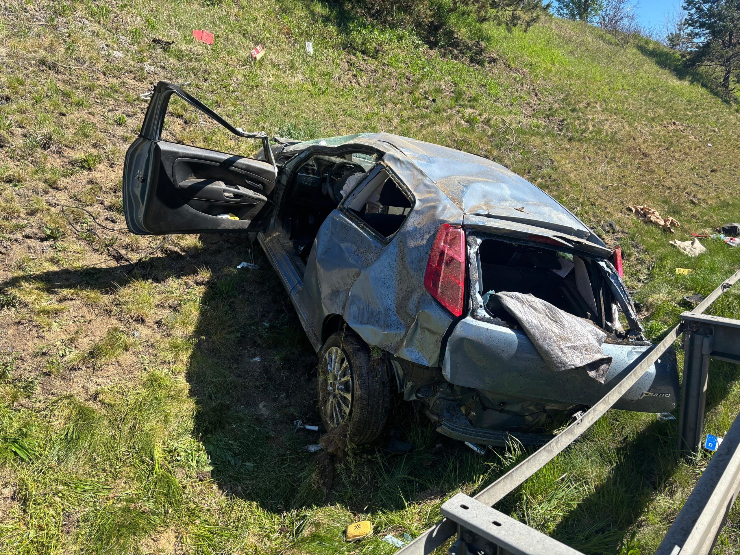 Eine Pkw-Fahrerin war aus bislang ungeklärter Ursache von der Fahrbahn abgekommen, fuhr anschließend rund 200 Meter entlang der Böschung und prallte schließlich gegen einen Baum. In der Folge überschlug sich das Fahrzeug mehrfach.