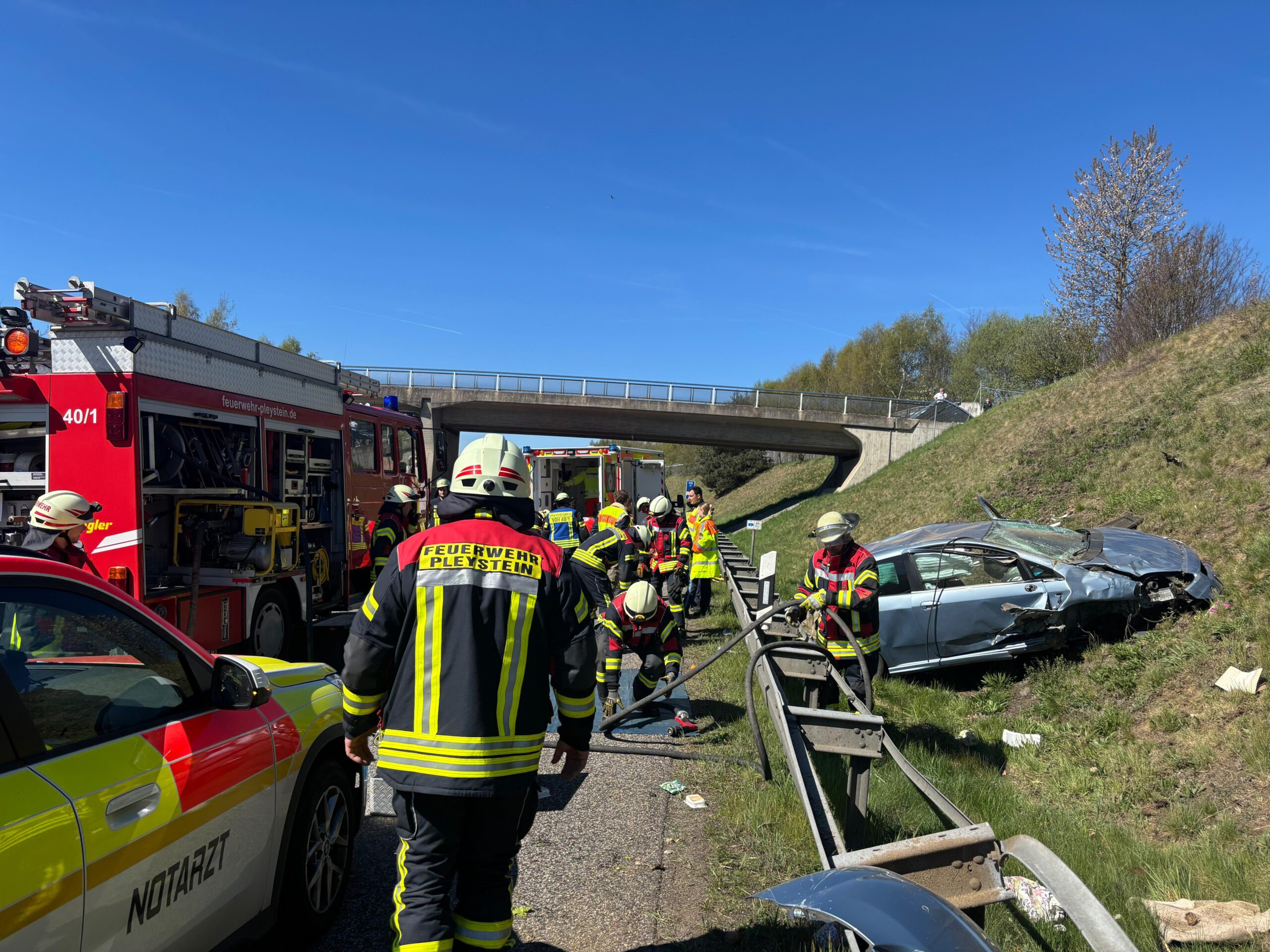 Am Sonntagvormittag wurden wir um 10:04 Uhr zu einem Verkehrsunfall mit eingeklemmter Person auf die Autobahn A6 zwischen Pleystein und Vohenstrauß alarmiert.